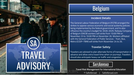 据讯,为加大对比利时政府政策的反对力度,比利时三大铁路工会将在本周发起罢工行动——根据工会的罢工通知显示,罢工将于11月23日22:00开始,持续至11月26日同一时间。