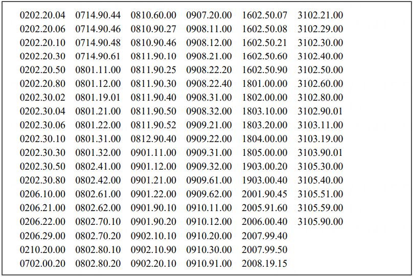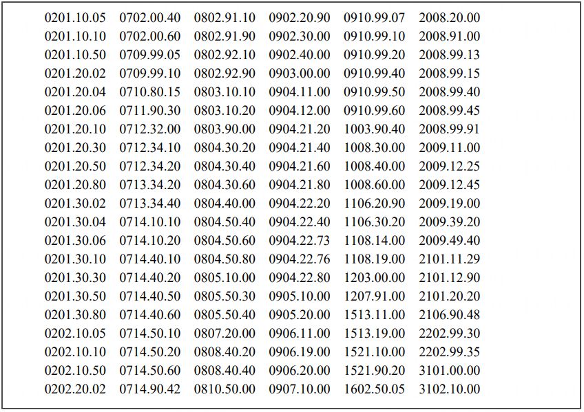 以下是产品的具体税号: