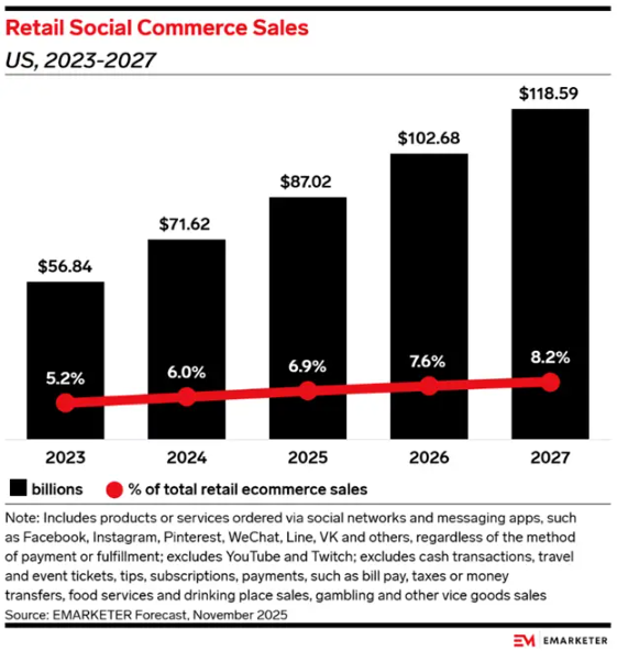 整体来看,尽管社交电商在美国零售电商中的占比仍然有限,但其增长趋势已十分明确。