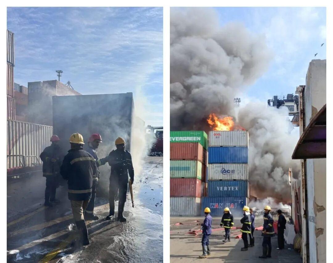 南区副警监赛义德·阿萨德·拉扎向《黎明报》透露,中央指挥控制室于当日下午1点45分左右收到西码头20号门一个集装箱起火的消息,警方“立即对卡拉奇国际集装箱码头(KICT)西码头辖区内一个集装箱发生的火灾做出反应”,救援队和消防队迅速赶到现场开展灭火工作。救援发言人哈桑·乌尔·哈西卜·汗称,救援队到达现场时,另一个集装箱又着火,随后呼叫了后备救援队。